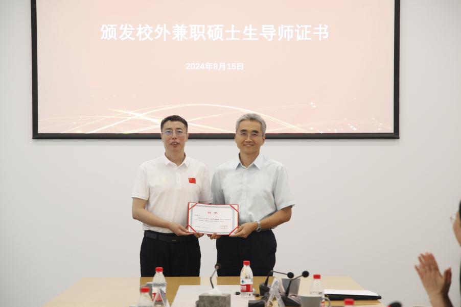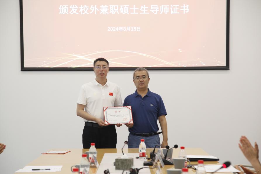 会上,武岳为中国建研院的校外兼职硕士生导师颁发证书,并感谢各位兼职硕士生导师对学院硕士生的悉心指导。