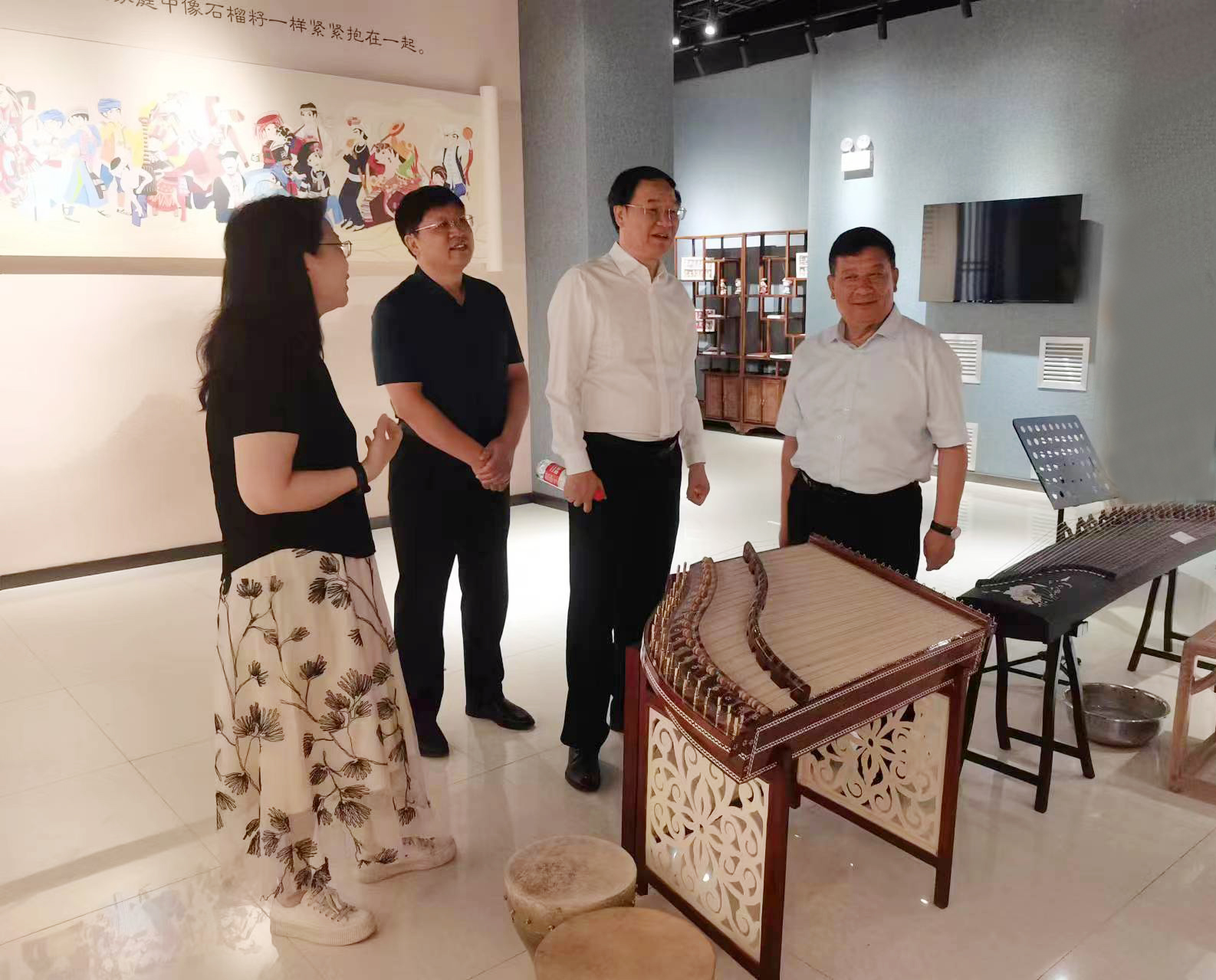 在买买提明·木沙陪同下,李文喜一行参观了喀什大学全景式教室、思政基地、黄胄艺术研究院、自然博物馆、国学馆、工程实训楼、食品工程训练中心等场所。随后,双方来校座谈交流。