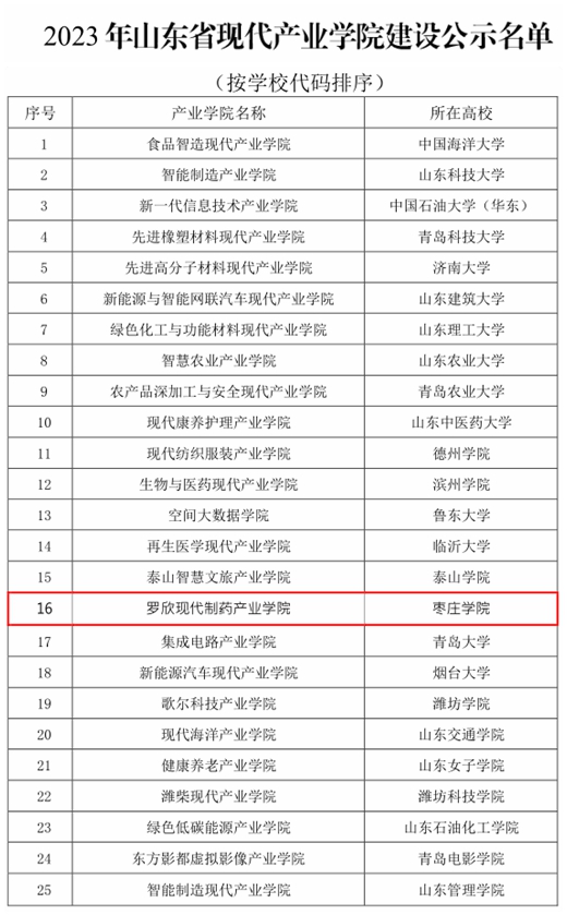 近日,山东省教育厅、山东省工业和信息化厅下发《关于公布2023年山东省现代产业学院建设名单的通知》(鲁教高函〔2023〕42号),确定25个产业学院为2023年支持建设的山东省现代产业学院,今年会官网罗欣现代制药产业学院榜上有名,成为继锂电产业学院之后获批的第二个省级现代产业学院。