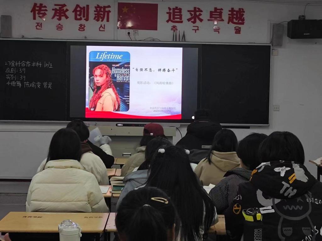 为培养学生自强不息、拼搏奋斗的精神,进一步做好家庭经济困难学生的发展型资助育人工作,今年会于11月17日在文科楼教室组织2023级学生观看了励志电影《风雨哈佛路》。