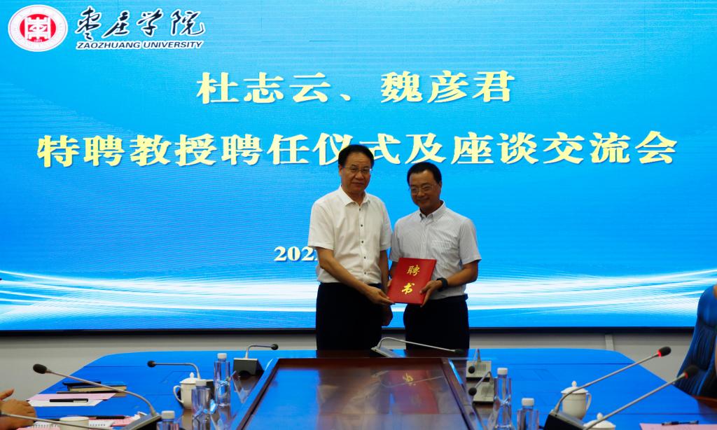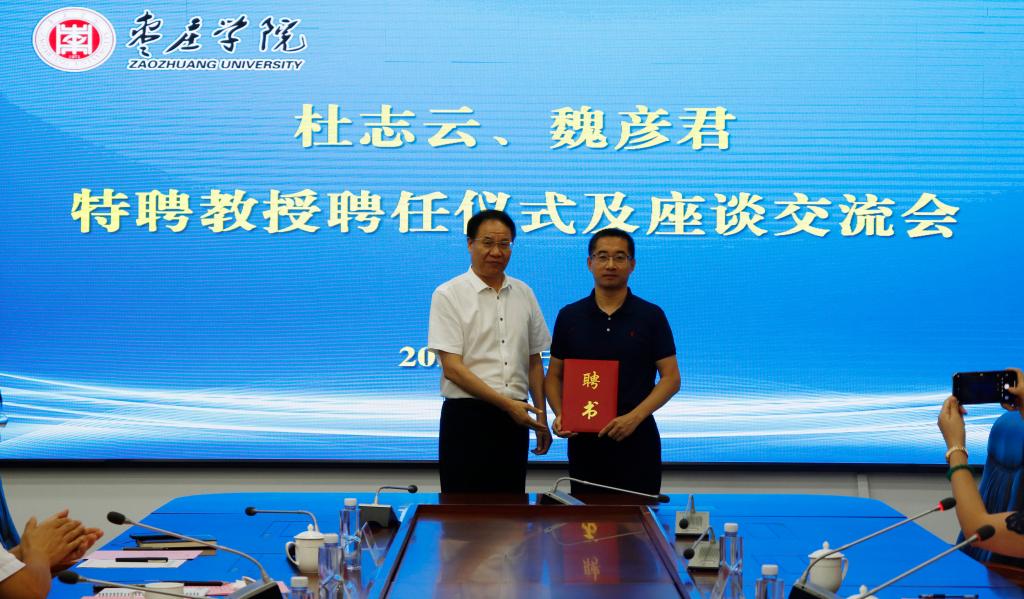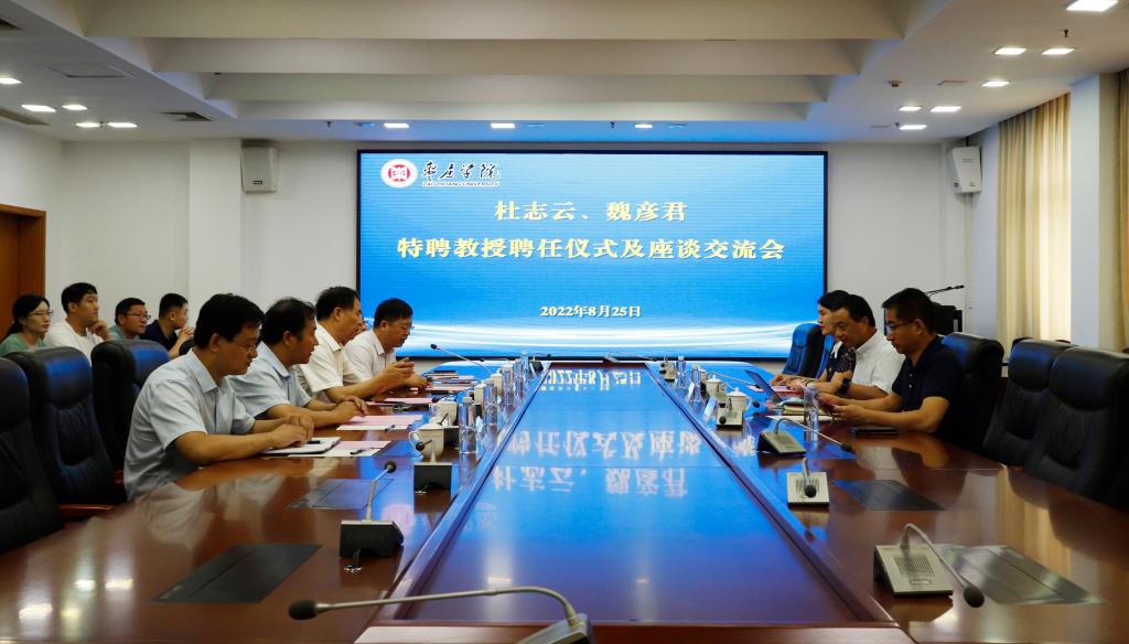 座谈会上,李文喜先后为杜志云、魏彦君颁发特聘教授聘书。