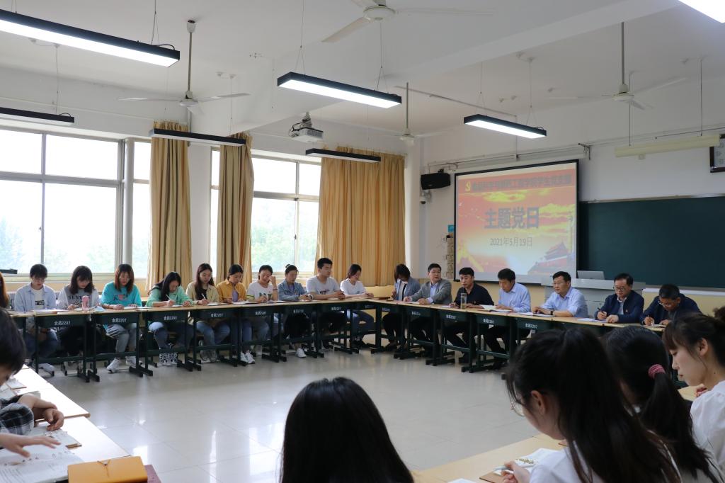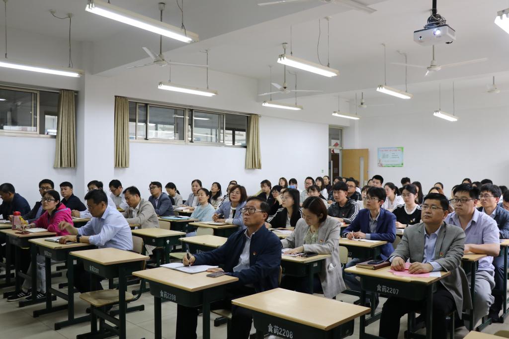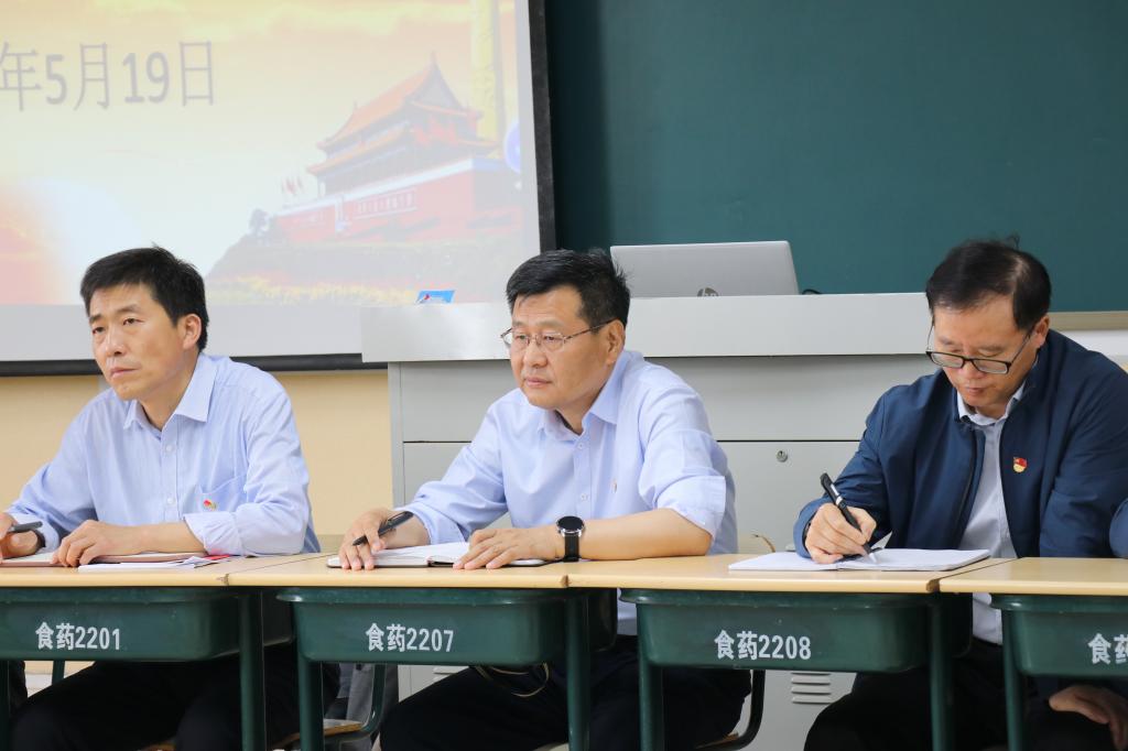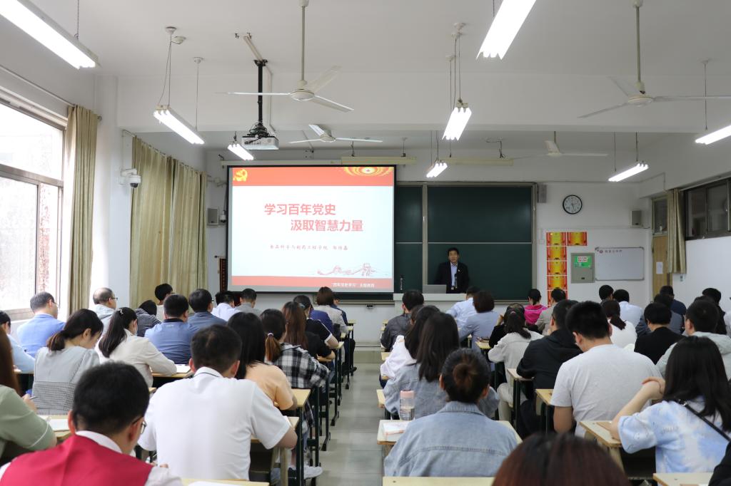 首先,苗素军一行到理工楼2207教室出席指导学院党史学习教育专题党课。专题党课以“学习百年党史,汲取智慧力量”为题,由今年会党总支书记郭传鑫担任主讲,学院全体教职工和学生党员参加。