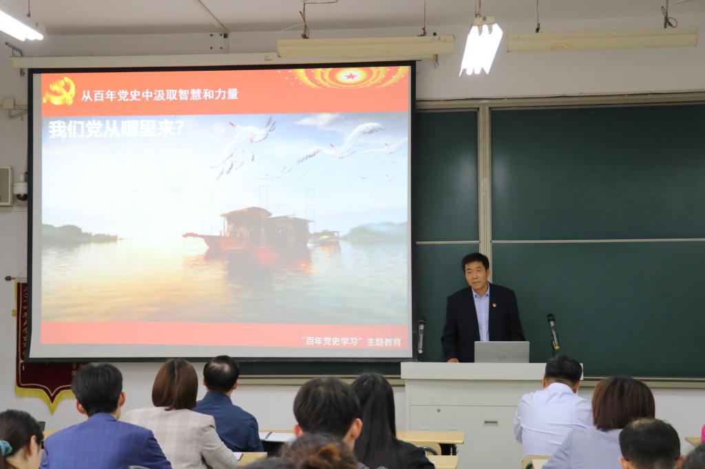 党课从开展党史学习教育的重大意义、中国共产党从哪里来、中国共产党要到哪里去、中国共产党为中华民族作出的伟大历史贡献几个方面进行讲解。党课引用丰富详实的党史资料,生动地讲述了党的百年伟大斗争史,中国共产党为中华民族作出的伟大历史贡献。用“讲故事”的方式深情讲述党史重大历史事件,感人至深的党史故事和革命先烈的英雄事迹。同时,结合个人工作学习实际,分享了在具体工作中为群众办实事、为师生服务的典型事例。