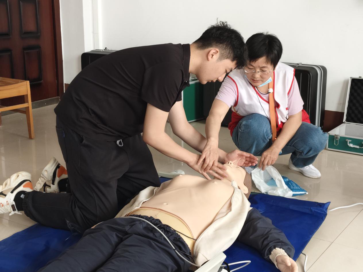 急救技能实操演练环节,在彭老师的亲自指导下,同学们利用模拟人道具进行了心肺复苏的全流程操作练习。彭老师耐心纠正每一位学员的操作姿势和力度,确保每位参与者都能准确掌握这项救命技能。演练现场互动气氛热烈。