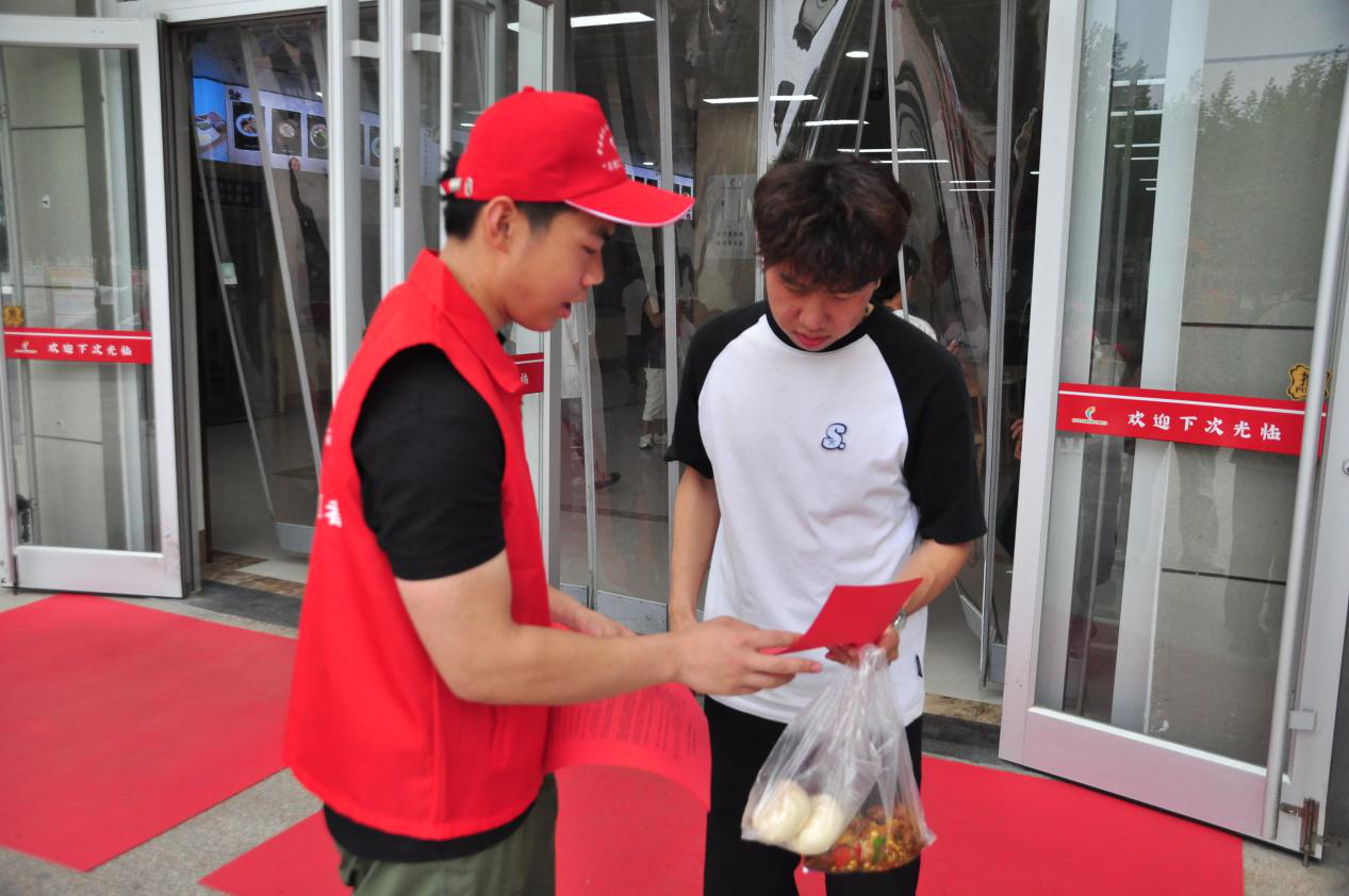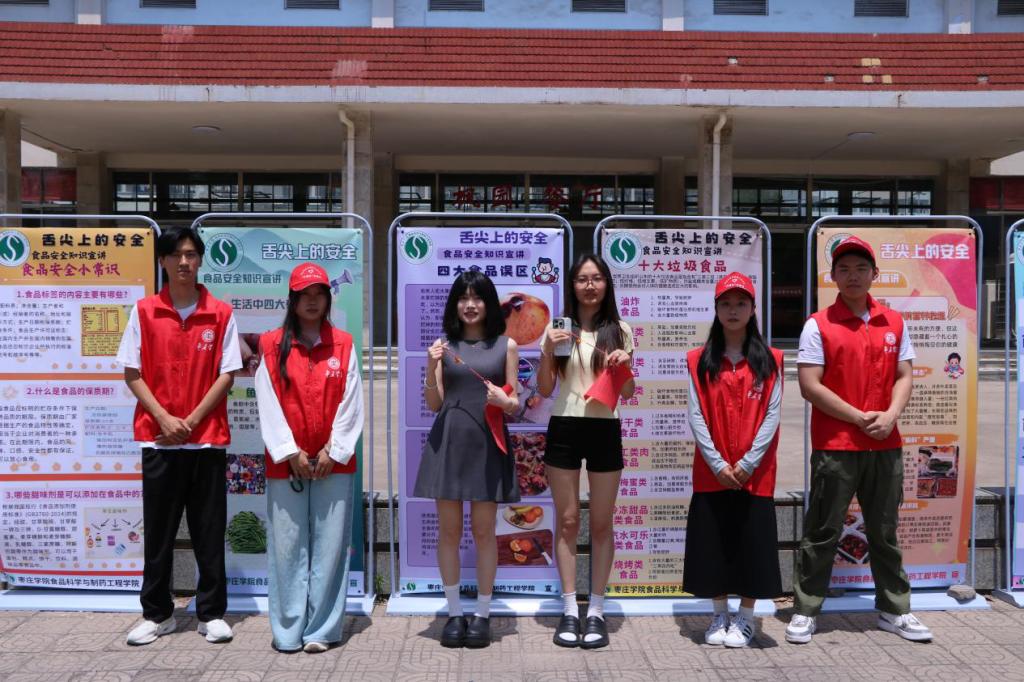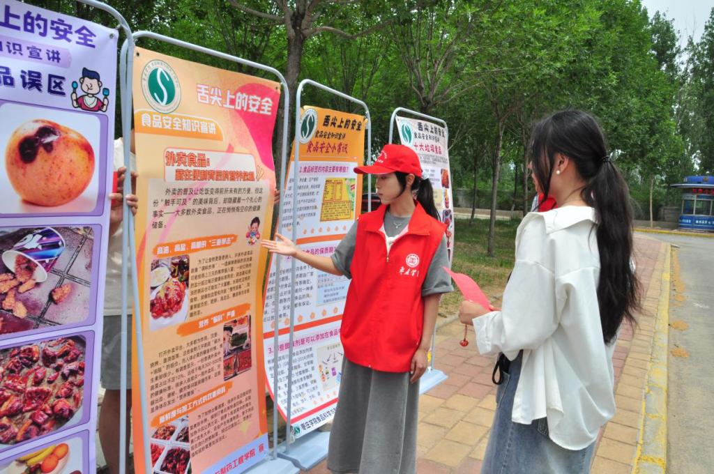 5月23日,学院将活动延伸至教职工餐厅。活动现场,关于食品安全的易拉宝依旧有序摆放,志愿者结合专业知识,对过往教职工及学生讲解食品安全知识,尤其针对夏季食品存放问题做出细致解答。随后,志愿者走进餐厅,为工作人员派发食品安全传单,并送上寓意吉祥的五彩绳,让大家在学习知识的同时,感受到浓浓的端午节日关怀。宣讲临近尾声,志愿者与在场教职工、学生共同喊出“外卖图快捷,健康需警惕”的口号,呼吁大家重视食品安全问题。