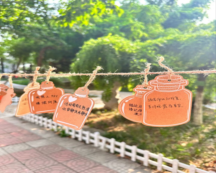 活动现场热情似火,同学们在缤纷的心灵卡片上,书写对未来的期许如星辰引路,书写对师友的感恩似骄阳暖心,书写对学校的祝福若春风拂面。“愿逐梦路上永不言弃”,“感谢室友相伴的温暖时光”,“愿您桃李满园,春晖四方”,“祝学校宏图更展,再谱华章”,一张张卡片,承载着青春的热忱与梦想,凝聚着向阳生长的心理能量。完成后的卡片被精心悬挂在校园展示区,构筑起一面充满温度的“寄语墙”,引得师生驻足品读,字里行间共鸣声声。