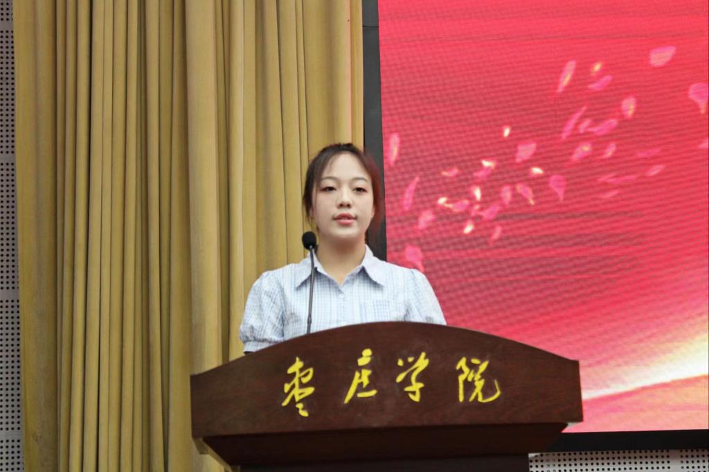 华莹对大会进行了总结。她希望同学们要肩负家国大义,传承枣院精神。她祝愿同学们在新的人生旅程上,以天下为己任,努力成长为堪当民族复兴大任的时代新人,书写更加精彩的人生华章。