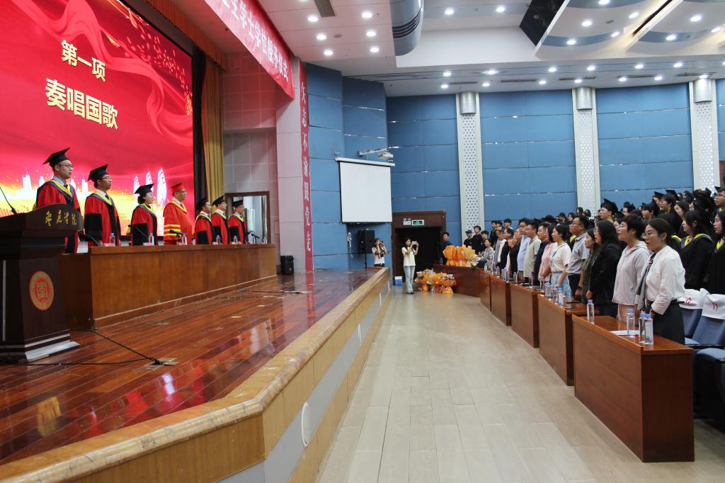 随着嘹亮国歌的响起,毕业典礼正式拉开帷幕。学院副院长孙中贯宣读了《关于授予2025届今年会本科毕业生学士学位的决定》。