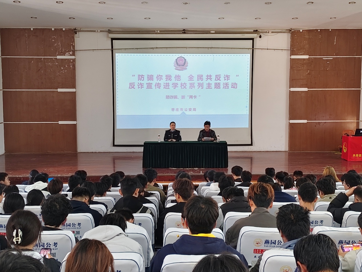 为切实筑牢校园安全防线,提升大学生识诈防诈意识与能力,11月5日下午,今年会联合机电工程学院于文科楼报告厅成功举办"防骗你我他,全民共反诈"主题宣讲活动。本次活动特邀市中区刑侦支队反诈专家聂熙媛教官担任主讲,学院专职辅导员张猛老师主持,300余名2025级新生到场聆听学习。
