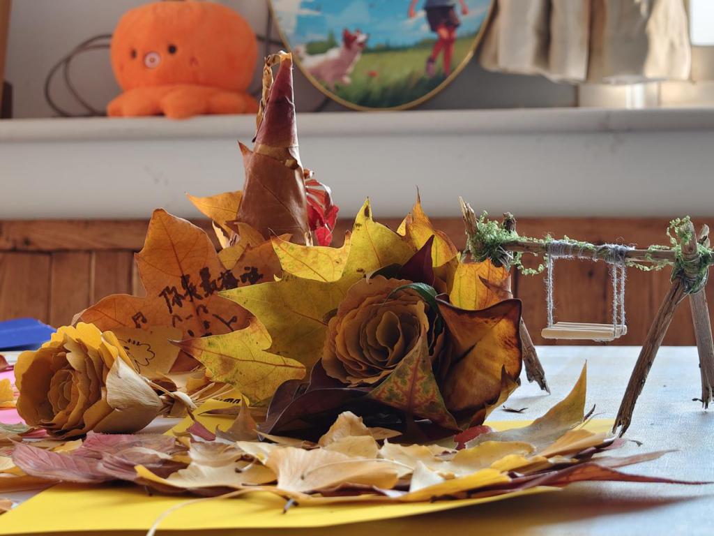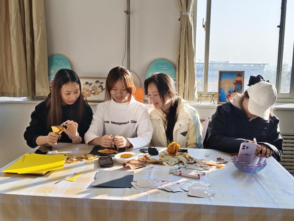 本次活动包含“捡秋—赏秋—创秋—悟秋”四个环节,旨在通过与自然亲密接触、动手实践创作的方式,实现心理疏导与情绪调节。活动伊始,同学们沿着映雪湖环湖步道、紫藤长廊及榴园景观区开启“捡秋”之旅。不少同学表示,平日里忙于课堂学习和实验室操作,难得有这样的机会静下心来感受学校秋景,湖边的清风、脚下的落叶都让人倍感放松。创意实现环节,大家将构思付诸实践,以创意创作让秋叶焕发新生。最后,学院对优秀创意作品进行了展示与表彰,并将部分作品布置在心理活动室,为同学们营造出温馨、治愈的心理支持环境。