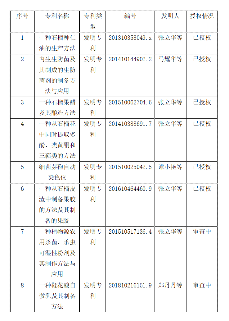申请专利情况统计一览表