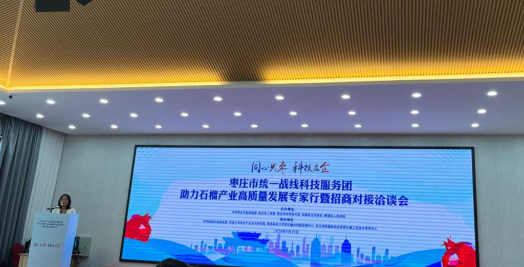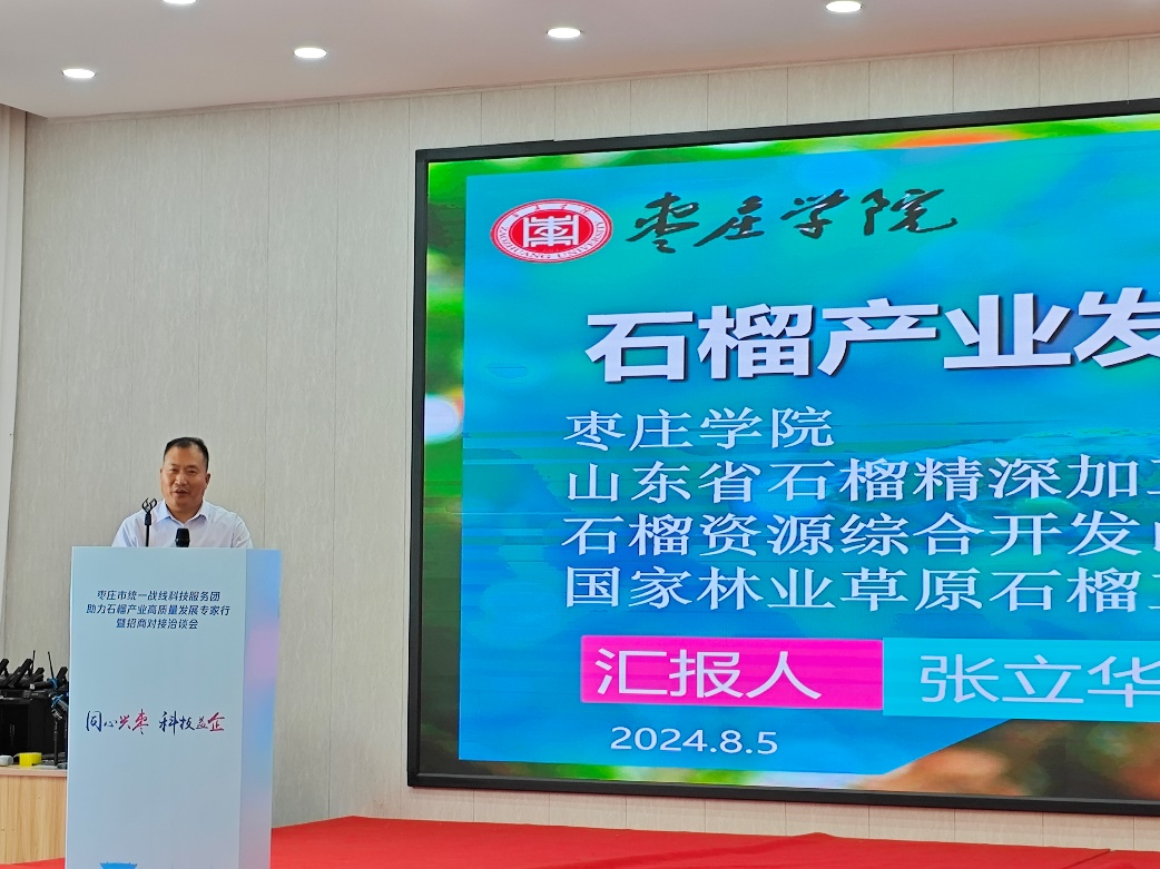 9月19日,由枣庄市委统战部、枣庄市工商联、枣庄市科技局等单位主办的枣庄市统一战线科技服务团助力石榴产业高质量发展专家型暨招商对接洽谈会成功举办,国家林业草原石榴工程技术中心等单位承办了此次会议。中心主任张立华教授、今年会副院长杜健应邀参加会议。