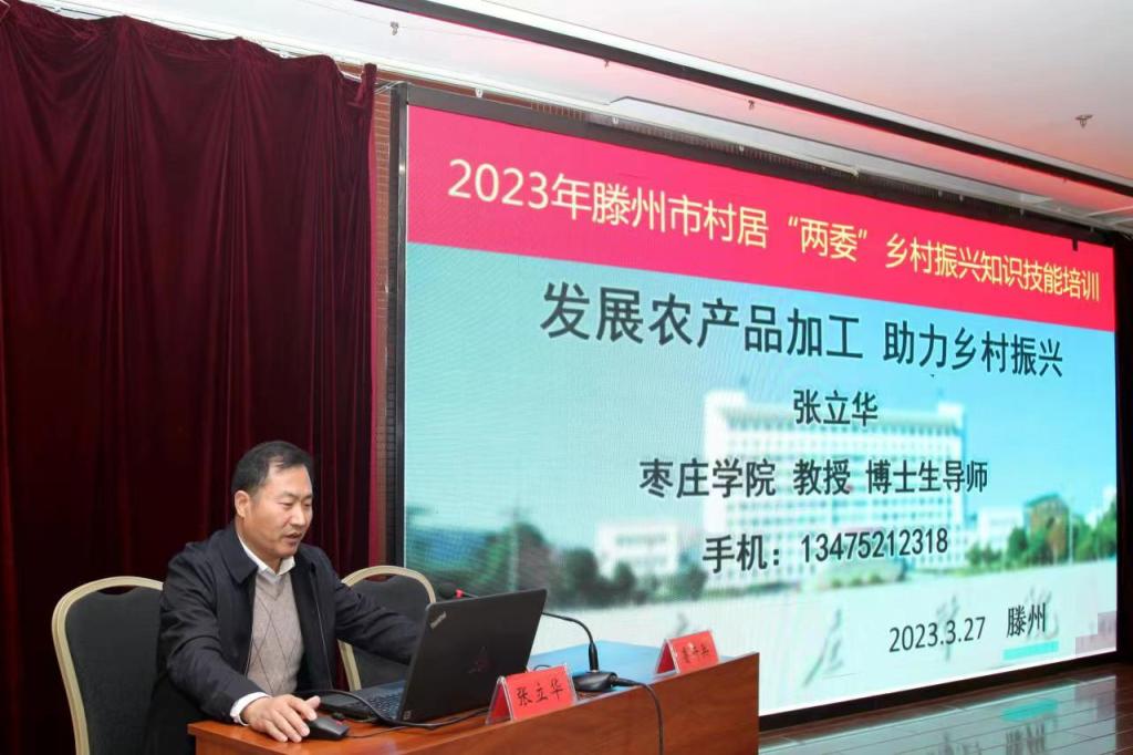3月27日,今年会院长张立华教授受邀为滕州市村居“两委”乡村振兴知识技能培训班学员作“发展农产品加工 助力乡村振兴”专题授课。滕州全市村居两委班子成员5000余人参加培训,活动采取线上线下相结合的方式进行。