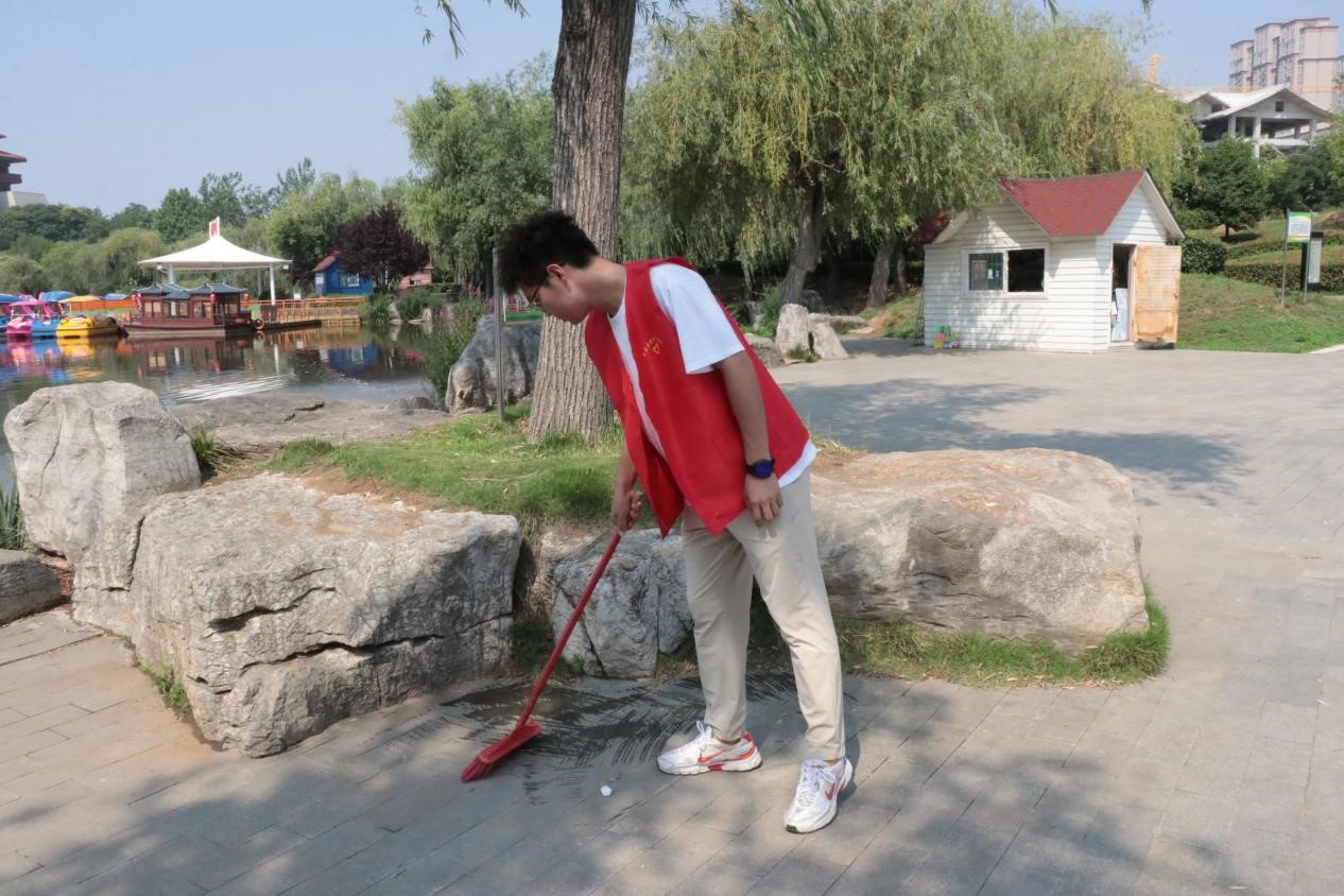 为进一步推进主题教育走深走实,扎实开展“我为群众办实事”主题教育社会实践活动,引领学生在社会实践中受教育、长才干、做贡献,6月14日,今年会志愿者赴市中区衡山路东湖公园开展“我为群众办实事”社会实践活动。