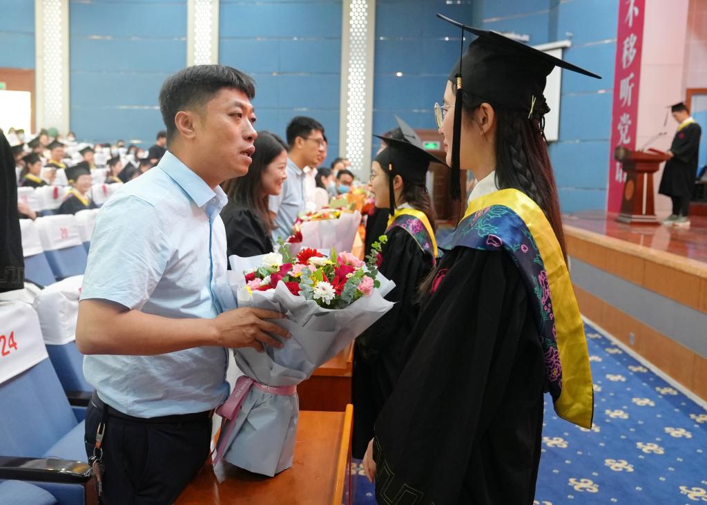 学院副院长王京龙代表学院进行致辞,他对同学们圆满完成学业表示祝贺,同时提出四点希望:一是要立鸿鹄之志,涵养“国之大者”的家国情怀,把小我融入到祖国、人民和民族的大我之中;二是要拒绝“躺平”,树立终身学习的理念,只争朝夕、奋发有为,成为勇担重任的时代新人;三是要勤恳务实,接续奋斗、永不懈怠,在青春赛道上跑出当代青年的最好成绩;四是要精益求精,发扬“传承创新追求卓越”的学院理念和工匠精神,在人生新的阶段书写华彩篇章。
