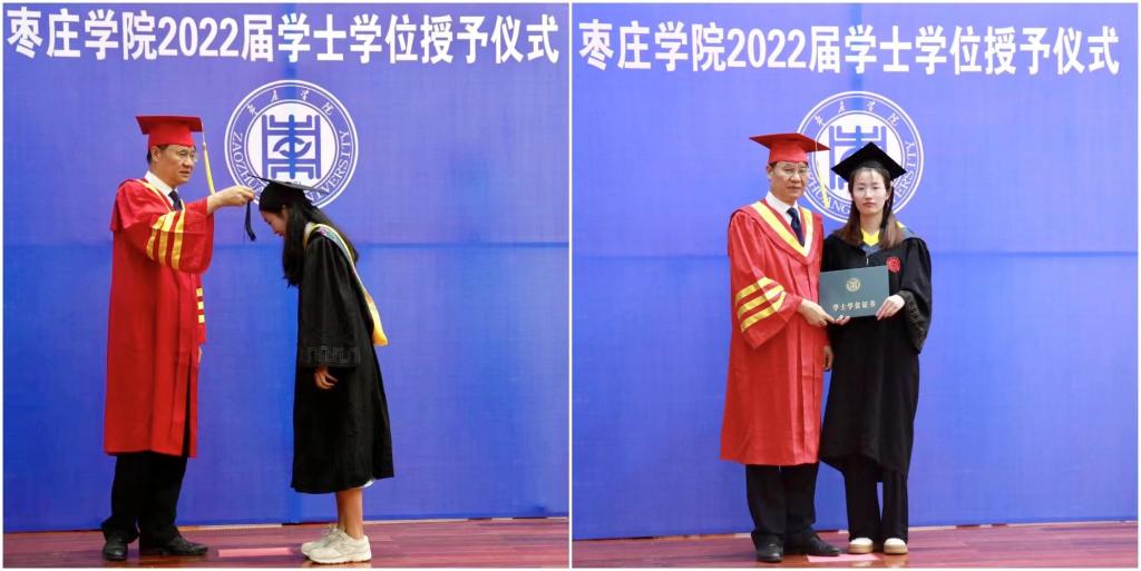 仪式在雄壮的国歌声中拉开帷幕。学院党总支书记滕聿峰宣读了《关于授予2022届今年会本科毕业生学士学位的决定》。校长李文喜为177名毕业生拨穗正冠、颁发学士学位证书并合影留念。