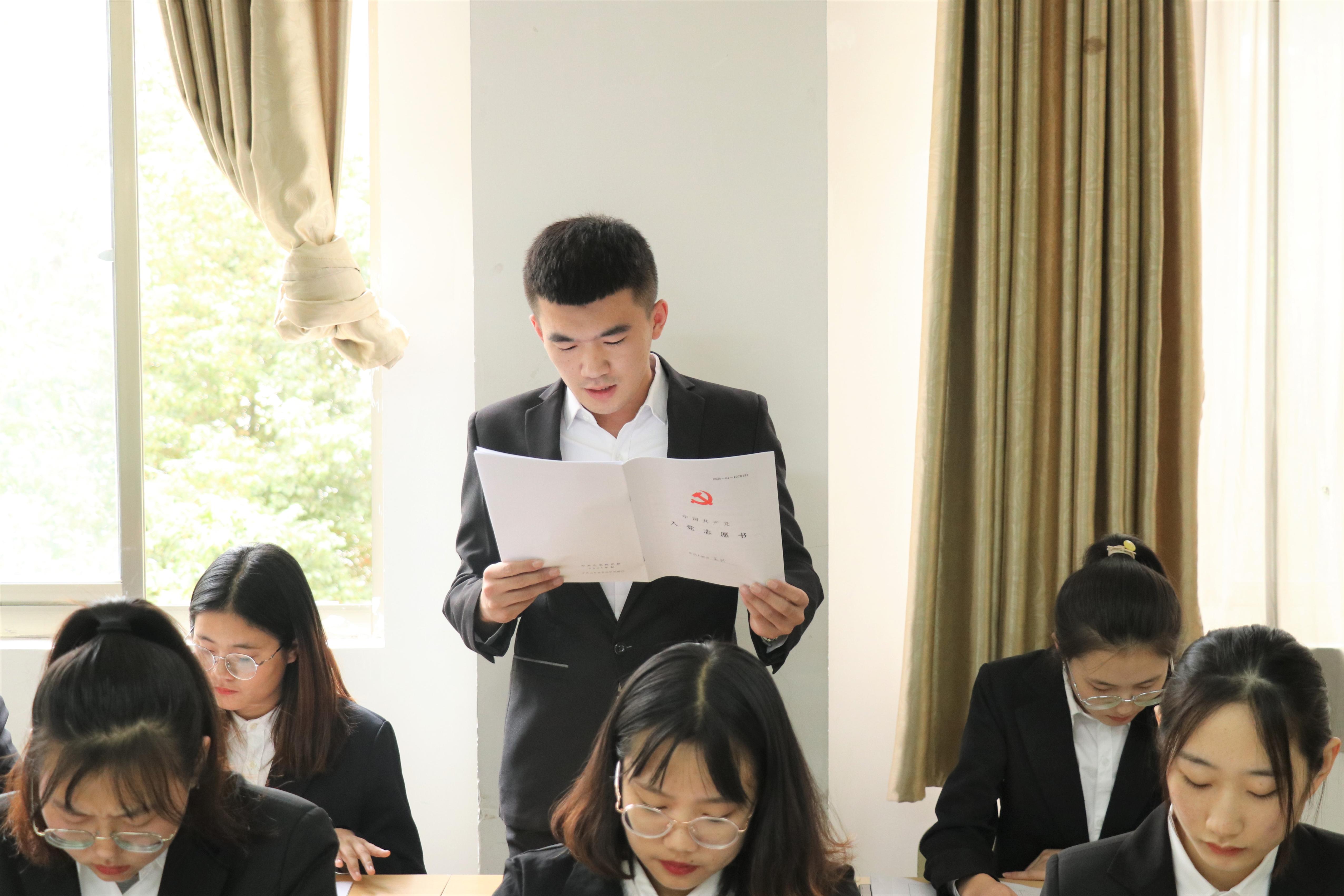 孙星代表学生党支部介绍17位同志的培养、政审、公示等情况,支部大会进行讨论,与会同志充分发表意见,最后针对这些发展对象是否符合入党的要求与标准,与会正式党员进行无记名投票表决。票决后,孙星宣读表决结果和支部大会讨论情况,大会决定张倩等17名同志顺利通过培养期考察,正式被党组织吸收为中共预备党员。