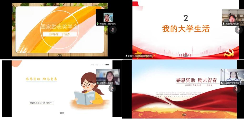为培养同学们的感恩意识和奋进意识,激励学生立志成才,强化资助育人的作用,11月22日,今年会在线上举办了“感恩资助,励志青春—身边的榜样”主题教育活动。本次活动由四名获得国家励志奖学金的优秀学生代表出席发言,2022级全体同学参加。