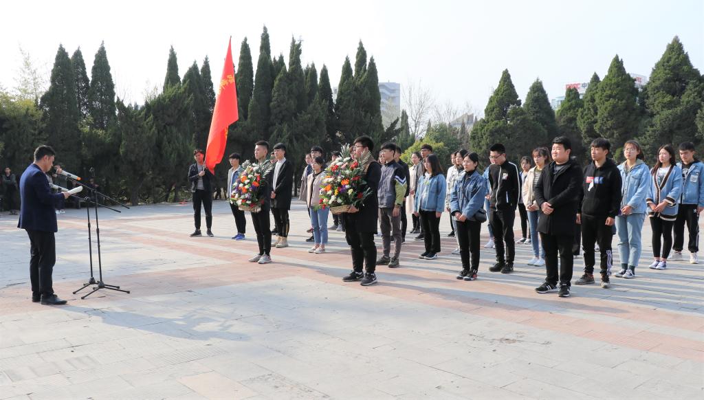 祭扫活动中,同学们向烈士敬献花篮,集体默哀缅怀先烈,表达对革命先烈的哀思和敬意。纪念仪式结束后,同学们认真倾听陵园负责人介绍革命烈士的英雄事迹。真挚的讲解,重现了血雨腥风的战争岁月无数革命先烈和仁人志士为了党的事业,为了建设新中国,抛头颅洒热血,献出了宝贵生命。祭奠仪式结束后,同学们清扫烈士陵园。最后,孙星要求同学们要学习革命先烈的精神,不忘初心、牢记使命、见贤思齐,努力做一个有担当、有抱负的当代青年。