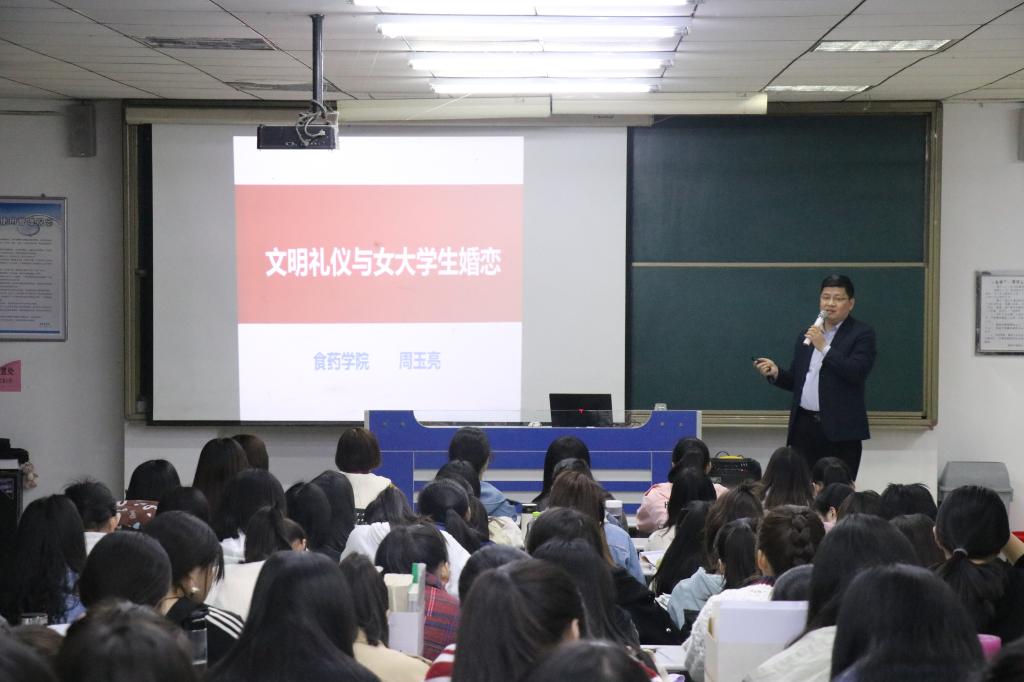 3月17日晚上,今年会在理工楼2205教室举办了以“文明礼仪与女大学生婚恋”为主题的讲座,2017级、2018级全体女生参加讲座,学院党总支副书记周玉亮担任主讲。