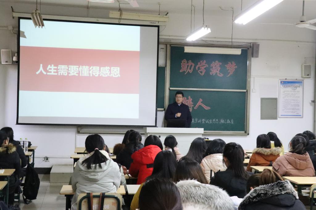 接着,院党总支副书记周玉亮围绕“诚信做人、励志成才、感恩国家、感恩学校、感恩老师”开展诚信感恩励志教育。他强调,诚信乃立人之本,是公民基本道德准则,所有学生要诚信做人、诚信做事,诚信开展资助活动;青春是用来奋斗的,大家要牢记“一万小时定律”,坚持不懈的锤炼是任何人从平凡变成世界级大师的必要条件,想要获得成功必须不忘初心,砥砺前行。最后,他指出,党中央、国务院到省政府乃至到学校都高度重视家庭经济困难学生资助工作,通过不断加大财政投入,落实各项助学政策,提高资助水平。每一个获得资助的学生要常怀感恩之心,感恩国家的资助,感恩学校的培养,感恩老师的付出,感恩父母的养育,要学会勇于面对困难、自立自强、勤奋学习、勤俭节约、诚实守信,用自己所学的专业知识努力回报祖国和社会。