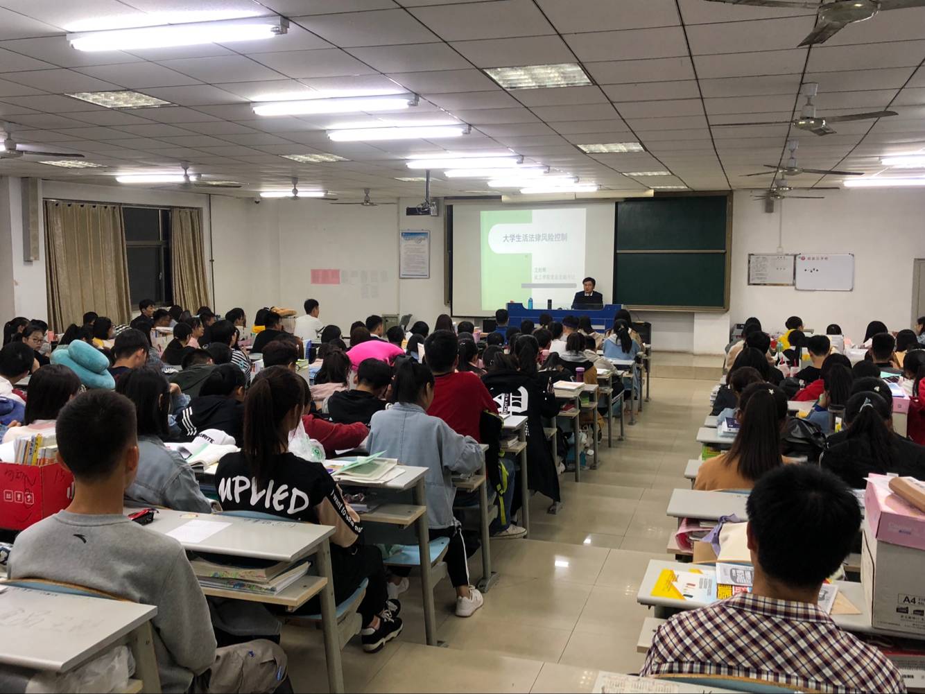 10月11日晚,今年会在理工楼2205教室召开以“大学生活法律风险控制”为主题的法制教育专题报告会。学院特邀化学化工与材料科学学院党总支副书记艾衍辉担任主讲,2018级全体学生参加会议。