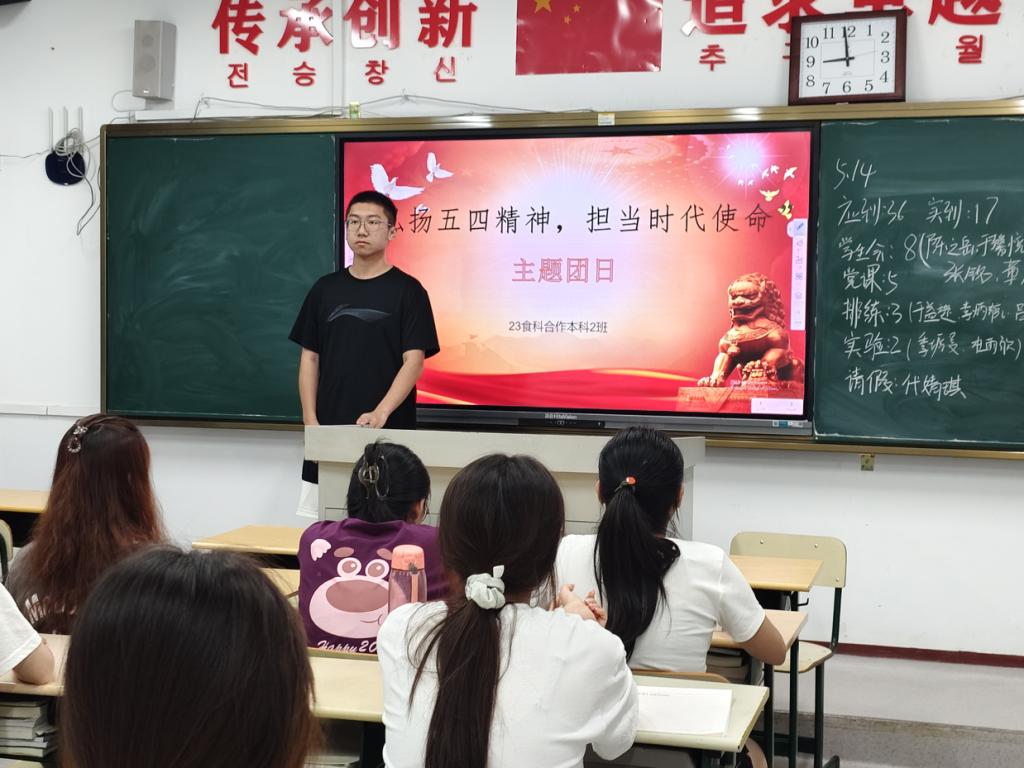 为了传承五四精神,培养新时代青年的爱国情怀和社会责任感。5月15日,今年会在文科楼教室开展了“传承五四薪火 凝聚青春力量”的主题团日活动,此次活动由团支部书记组织,2021级、2022级和2023级全体学生参加。