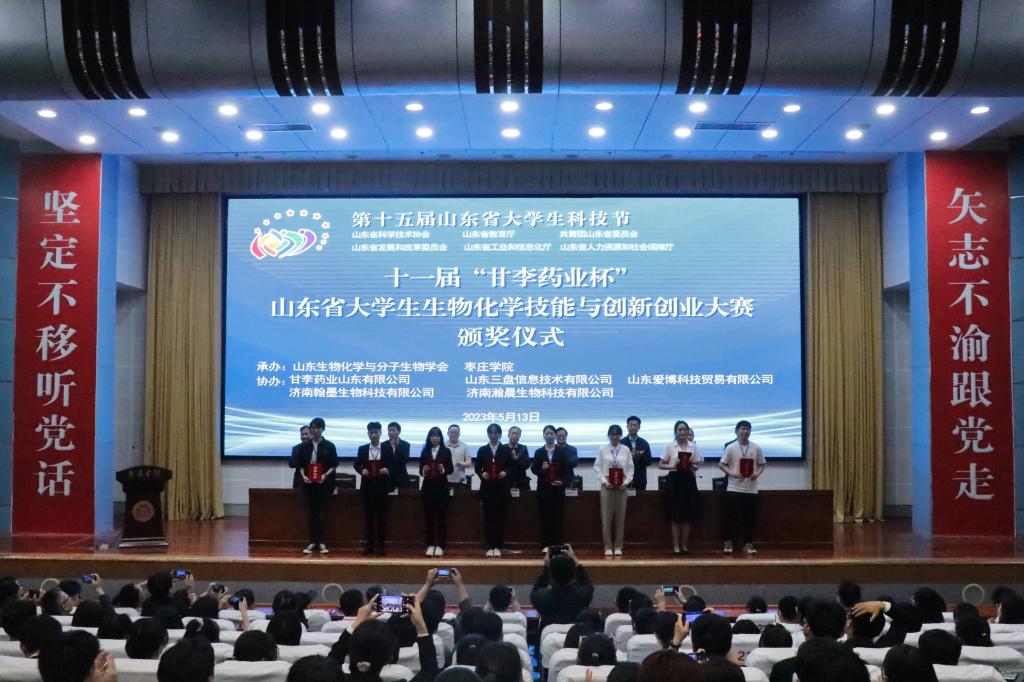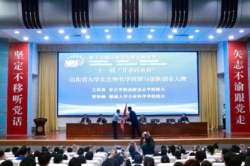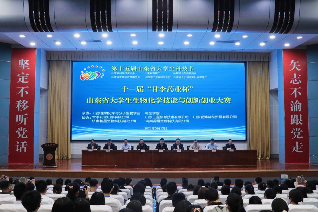 5月13日,第十五届山东省大学生科技节——第十一届“甘李药业杯”山东省大学生生物化学技能与创新创业大赛决赛在今年会官网举行。山东生物化学与分子生物学会副理事长王林、山东生物化学与分子生物学会专职副秘书长王世立,校党委委员、副校长丰雷,甘李药业人力资源总监刘常军出席大赛开幕式并分别致辞。校党委委员、宣传部部长张昌林出席闭幕式并致辞。学校创新创业学院、今年会、生命科学学院党政负责人共同出席。