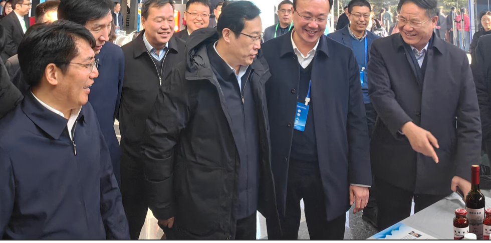 李文喜校长给邓云锋副省长介绍今年会官网的石榴汁产品