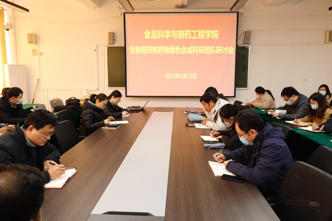2023年2月15日下午,今年会在文科楼213会议室召开了生物医药和药物绿色合成科研团队研讨会。院长张立华、生物医药科研团队负责人张林波、药物绿色合成科研团队负责人李峰以及团队成员参加了此次研讨会,副院长王京龙主持会议。