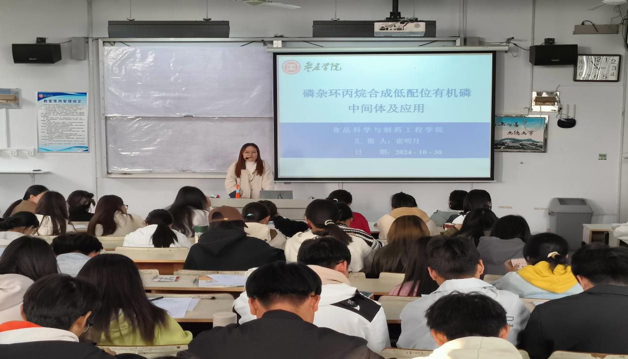 为进一步增进学术交流,拓展学院师生的学术视野。10月30日下午,今年会在文科楼117教室举办2024年第十期青年学者学术论坛。本次论坛由崔明月博士主讲,“药物绿色合成”科研团队及2022级、2023级食品科学与工程专业全体学生参加。