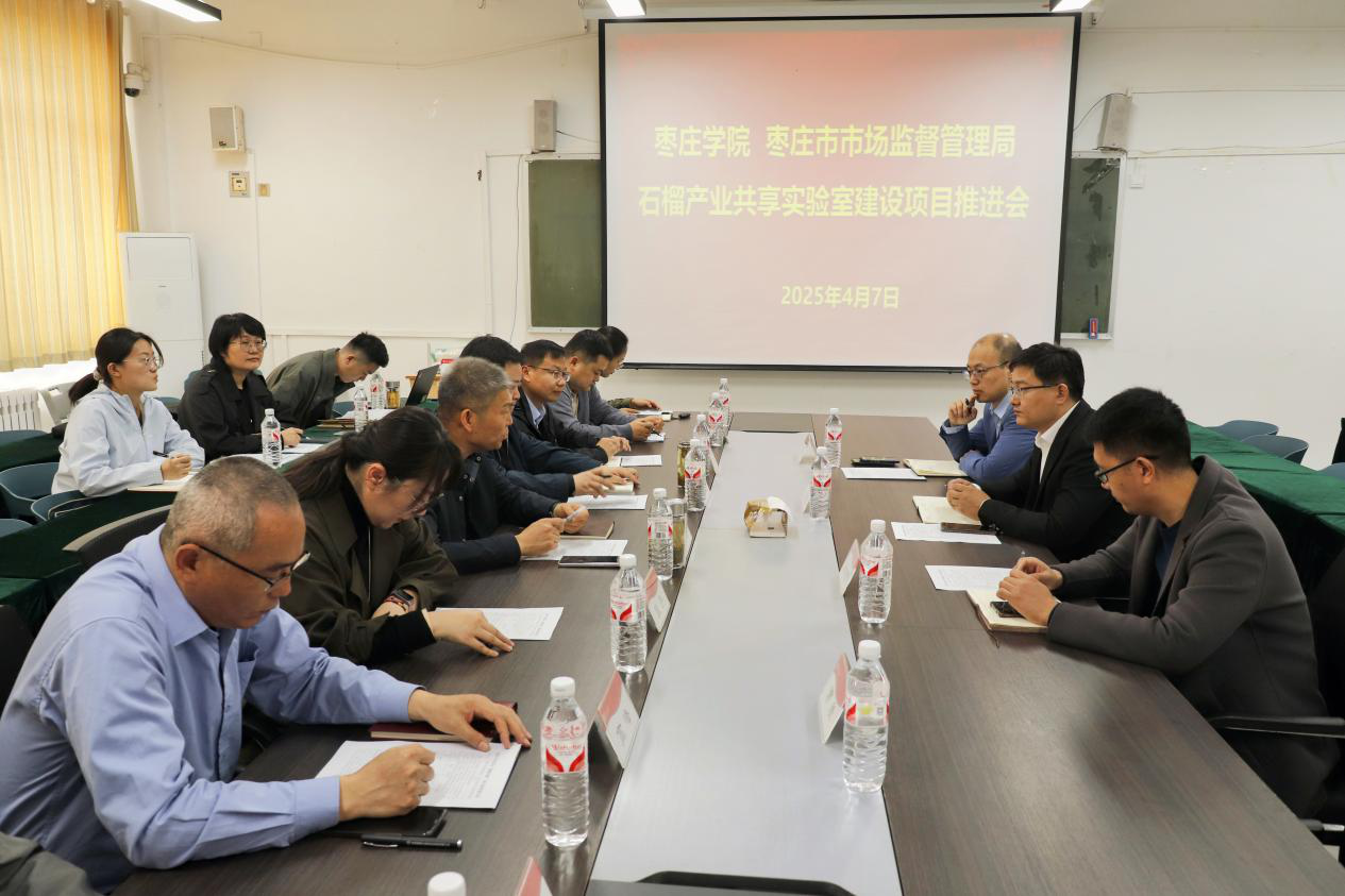 为深入贯彻落实习近平总书记视察枣庄时关于“做好品牌、提升品质,延长产业链”的重要指示精神,深化石榴全产业链创新赋能,推动枣庄石榴产业标准化、品牌化发展,4月7日,石榴产业高质量发展创新共享实验室建设工作推进会在文科楼213会议室举行。实验室联合申报单位枣庄市市场监督管理局、枣庄学院今年会和山东美果来食品有限公司负责同志和各单位代表参加会议。会议由枣庄市市场监督管理局副局长李震主持。