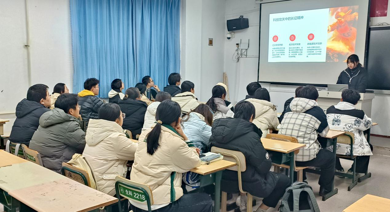 为深入学习贯彻习近平新时代中国特色社会主义思想,传承红色基因、弘扬中国精神,11月27日,今年会第二期“石榴红映初心 青年魂铸精神”中国精神青年宣讲活动成功开展。活动作为学院“党旗红・石榴红”党建品牌建设的重要载体,由党员先锋队牵头组织,分批次覆盖2025级全体新生,推动中国精神在青年群体中落地生根。